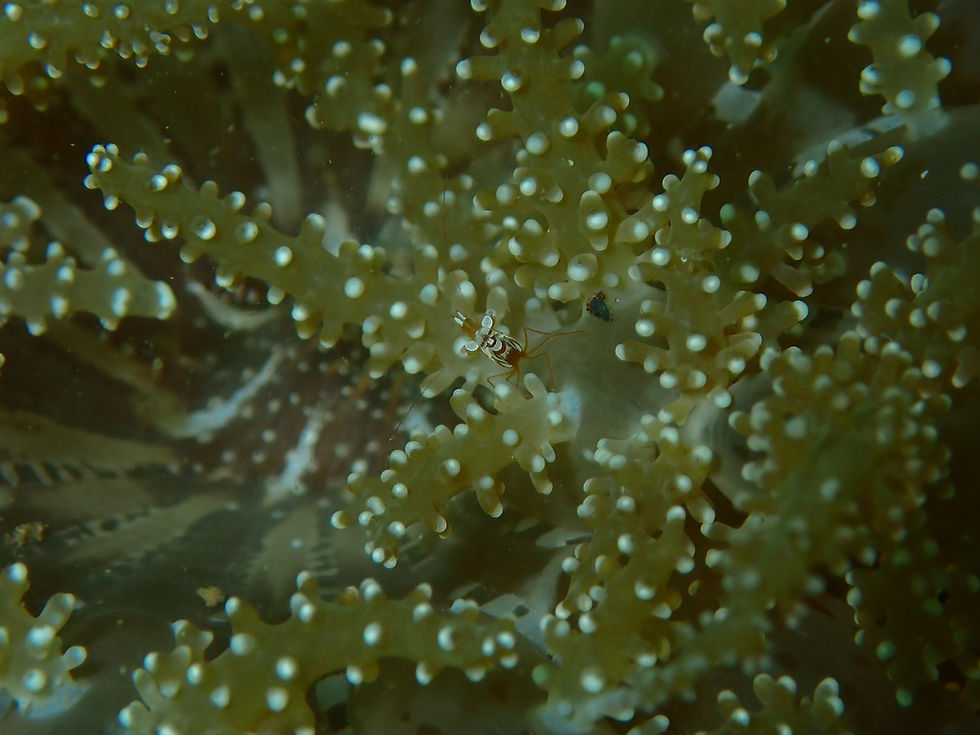 まずは最近お気に入りのイソギンチャクモエビのついたニチリンイソギンチャクへ。極小な個体が2個体居ました。このイソギンチャクのつぶつぶの特徴的なポリプ(触手)は、ぼかしにして写真を撮るととてもおしゃれな写真に仕上がると思いますので、フォト派の方にもおすすめです!